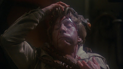 Suffice to say that within seconds of the others leaving he's killed by what looks like a big rubber testicle that jumps on his back and squeezes his head till it pops.