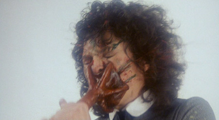 The special effects, given the movie's non-existent budget, are both ingenious and incredibly disturbing to watch, in particular the scene where the naked, reborn Sam slowly crawls out from between his 'mothers' legs covered head to toe in slime and blood whilst our first glimpse of the alien walking thru' the misty woods is a truly remarkable sight.