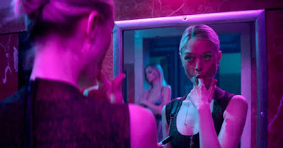 With it's Argento cum Kubrick cum all things shiny (and all over the sofa if this movie gets any more gorgeous to look at) agenda firmly in place for all to see Jesse busies herself carefully wiping the muck off her smooth, milky white skin as the red-headed, trash epic temptress that is Jena Malone gazes lustfully at her from behind a mirror whilst smoking a cigarette in the way that only bad girls - and your mum - can.