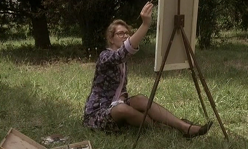Fairly annoyed to begin with (he keeps dipping his cock in her watercolours) Ramona finally gets into the groove as the youngsters say, hoisting up her dress and and going with the - sweetly sticky - flow.