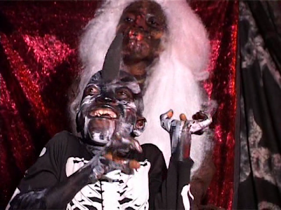 Lead singer - and star of the show, albeit only because she's the single cast member that can actually string a sentence together - Flavia Flav (Superstar AKA Silvia Pintos), bassist (and ex plumber) Mario (Chaplin, great-grandson of Charlie, no really) plus her boyfriend (and top rock guitarist) Rafa (Subterfuge - not his real name) take a minute to think Arkan's offer over before deciding that being stuck in a spooky old castle with a fey German and his practically mummified, pneumatically breasted friend is preferable to sitting cramped in the corner of a leaky van whilst the bands two other members, Billy and Sharon continue their world record breaking shagathon on a pile of sleeping bags in the back.