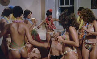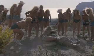 Meanwhile back at the lake a local all-girl volleyball team have decided to stop for a picnic followed by some nude cavorting to a jaunty Hammond organ score.