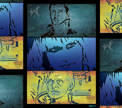 Being the only two cast members with any ounce of acting ability (well one of them does) it's Caine and Koster who finally find Stevie, who by this time is covered in what looks like dried whale spunk and glued to a wall alongside the remains of the base scientists.