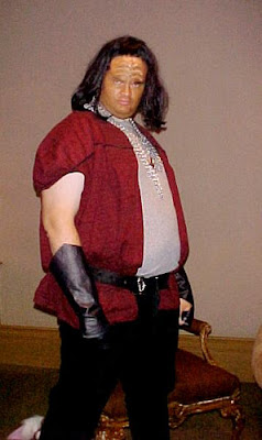 But as night falls all hell breaks loose in the woods as, from nowhere a looming shadow lumbers out of the dark before revealing itself - in hideous technicolour close-up - to be a baw-faced man-breasted Star Trek fan (in a scarily stained and pulled necked Starfleet t-shirt and smelling of warm milk) resplendent with a greying ponytail that hadn't seen a bottle of shampoo for at least 30 years waving the brightest phone you have ever fucking seen around his head as if warding off demons whilst mumbling away to himself in a voice only his mother (WHO WILL NEVER DIE!) would love.