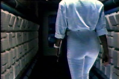 Arriving at the base and immediately catching the (boss) eye of the sex starved Baxter, Colby is introduced to everyone before being taken up the laboratory (steady) by Dr. Hauser to stare at a room full of dead rabbits and what looks like a big stringy shit in a Perspex box.