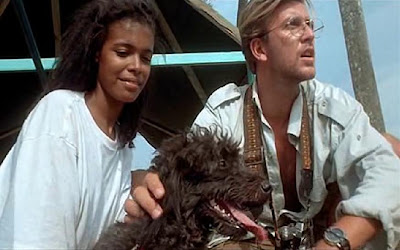 Being a dirty foreigner (compared to the others of course) and being the only non-named actor in the cast it's obviously Cynthia's job to go look for the furry lil devil, calling out as she wanders through the bushes, eventually arriving at where the boat is docked.