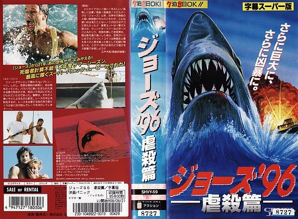Especially for one of our regular readers, Mr. Pol Daniels, here are some fantastic(ally) shite Japanese shark film VHS covers!