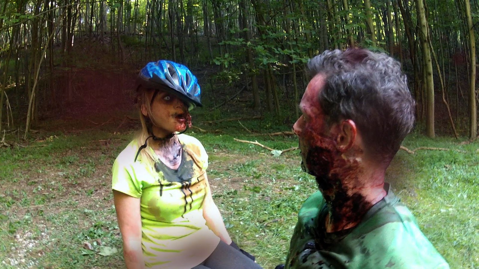 Jumping off his bike to help Terry is shocked when the woman sits up and bites him causing our hapless chum to accidentally step on her face before running off into the trees and losing consciousness.