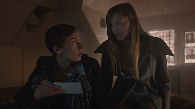 When her pals do turn up they're this time accompanied by the lank haired bad boy neighbour Greg (played by Daniel Zovatto...what are the chances?) who offers to drive them to Hugh's address, an abandoned house he'd rented for the sole purpose of shagging Jay, where amongst the stiff tissues and porn, they find a photo of him outside his high school.