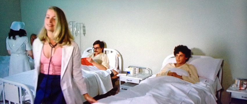Well I'm assuming she's a nurse, I mean she's dressed like one but then again so is the feisty intern Kim (Wong from Scott Pilgrim but don't hold that against her) and she seems to know fuck all about medicine and seems much more interested in paying homage to the bit in Nightmare City when the lovely Mrs. Miller chats to Phil about his ailment.