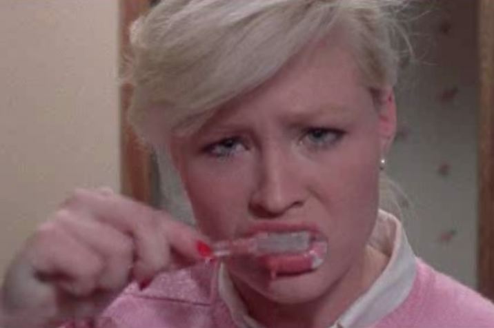 Imagine a demonic, sexed up love child of Shelley Duvall and Barbara Steele on crack and you're halfway there, I could have watched her chewing on naked jocks all night.